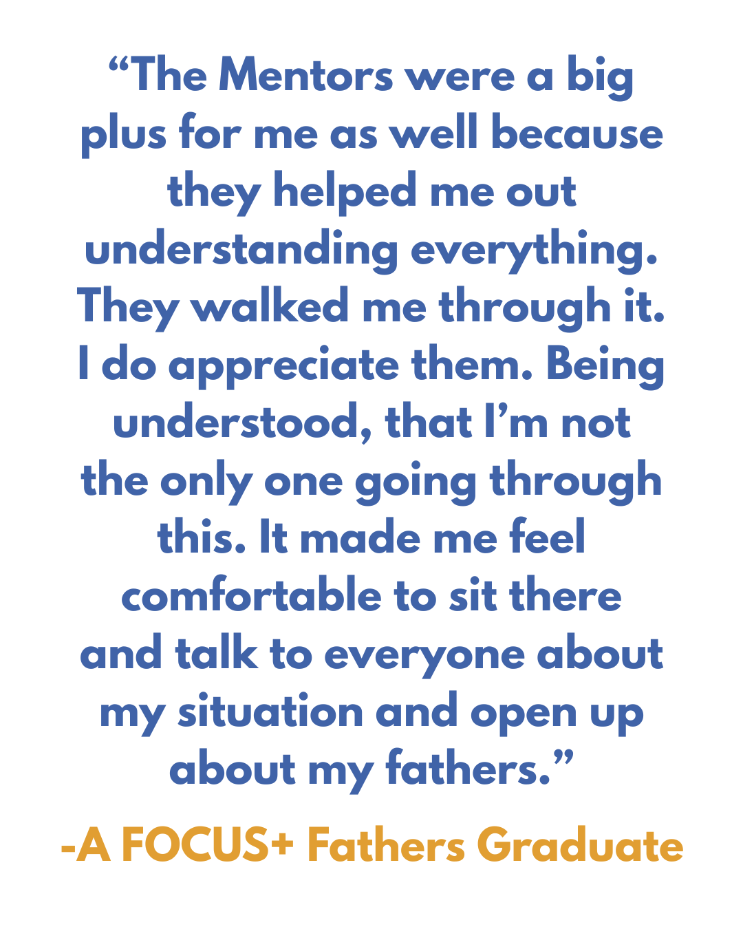 Mentor-Navigators deliver comprehensive, holistic support to clients using a relational engagement approach. They play a vital role in the success of parents enrolled in our CPS FOCUS+ Programs. While parents gain valuable life skills through the classes, Mentor-Navigators help reinforce those concepts and identify opportunities in real-world situations.